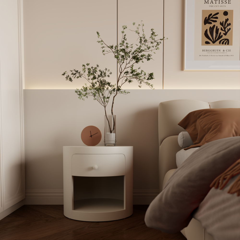 Представляем вам шикарную прикроватную тумбу «Cilantro Cove» из коллекции Wabi-Sabi — идеальное решение для вашего уюта и стиля. Изготовленная из высококачественного ЛДСП Е1 с изысканными деревянными ящиками, эта круглая тумба сочетает в себе практичность и гармонию, отражая философию Wabi-Sabi, где красота заключается в несовершенстве.